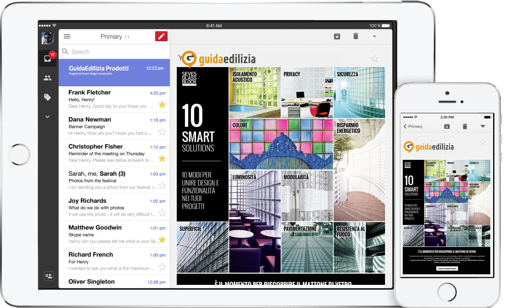 Oltre 25 milioni di newsletter inviate e milioni di contatti qualificati. Aggiorniamo settimanalmente i nostri utenti inviando nella loro casella di posta elettronica una newsletter con le notizie principali. Tra queste possono trovare spazio anche gli articoli relativi alla tua azienda. Non solo: GuidaEdilizia ti dà la possibilità di raggiungere tutto il nostro database di utenti, o una parte selezionata di esso, con DEM completamente dedicate alla tua attività.
